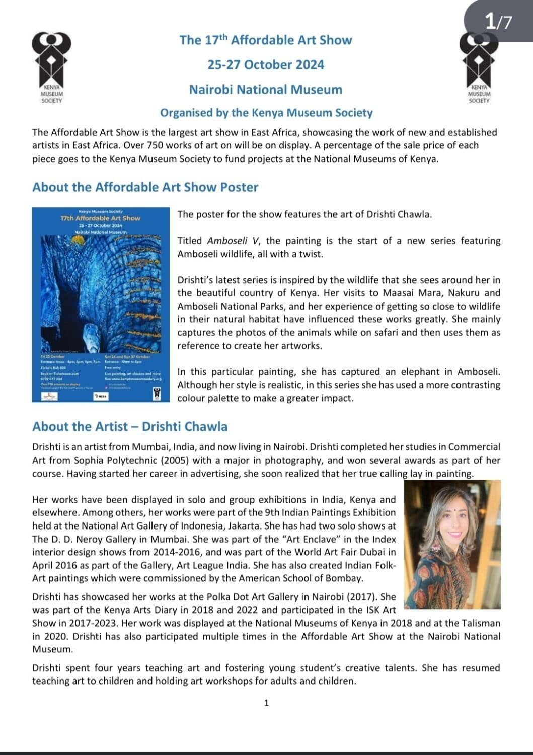 You are here: Home1 / Activities & Events2 / Events3 / 17th Affordable Art Show Programme – 25 -27 October 2024, Nairobi...