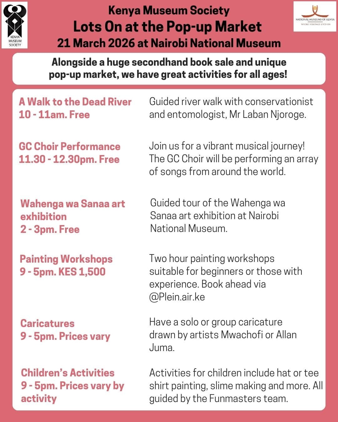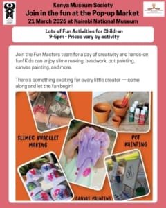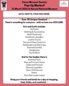 Bookings: 0724 255 299 or info@kenyamuseumsociety.org